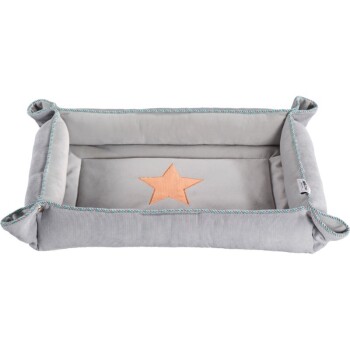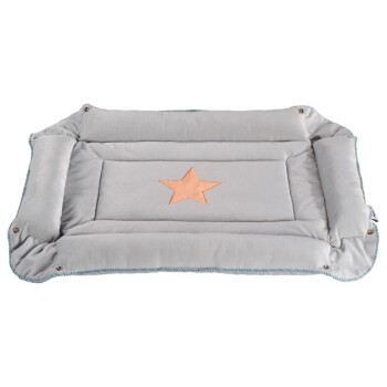 Der Sternchenaufnäher verleiht dem Liegeplatz ein modernes Design. Dank der Polsterung bietet der Liegeplatz einen kuschlig weichen Rückzugsort für Ihren kleinen Liebling. Die Matte lässt sich universell einsetzen und ist somit perfekt für das Auto oder auch zu Hause geeignet.