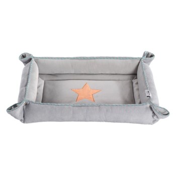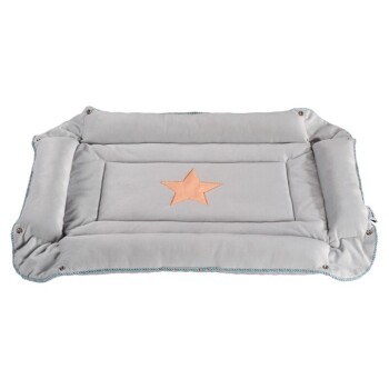 Der Sternchenaufnäher verleiht dem Liegeplatz ein modernes Design. Dank der Polsterung bietet der Liegeplatz einen kuschlig weichen Rückzugsort für Ihren kleinen Liebling. Die Matte lässt sich universell einsetzen und ist somit perfekt für das Auto oder auch zu Hause geeignet.