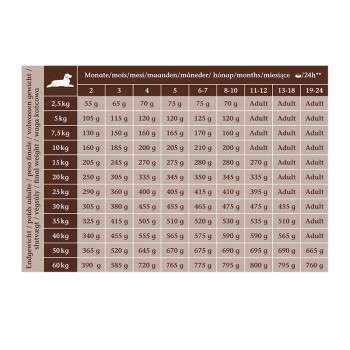 Der tatsächliche Bedarf richtet sich nach Rasse, Alter und Aktivität.