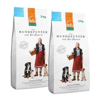 Das defu Premium-Trockenfutter „Junior Geflügel“ ist eine ausgewogene Mischung aus leckerem Bio-Huhn, vitaminreichen Bio-Karotten sowie aromatischen Kräutern, Mais und Reis aus kontrolliert ökologischem Anbau.
