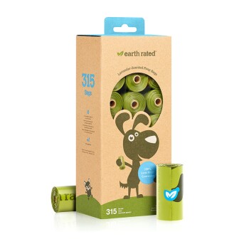 ine Packung Earth Rated Kotbeutel ohne Duft enthält 21 Rollen mit je 15 Beuteln (315 Beutel pro Packung). Die Kotbeutel sind biologisch abbaubar und passen in die meisten Standardleinenspender.