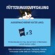 Bitte zimmerwarm servieren und am besten auf mind. 2 Mahlzeiten aufteilen. Sauberes, frisches Trinkwasser sollte stets zur Verfügung stehen. Diese Richtwerte für ältere Katzen basieren auf mäßig aktiven Katzen bei normaler Umgebungstemperatur. Individuelle Bedürfnisse können variieren, sodass die Futtermenge entsprechend angepasst werden sollte, um ein schlankes, gesundes Körpergewicht zu erhalten.