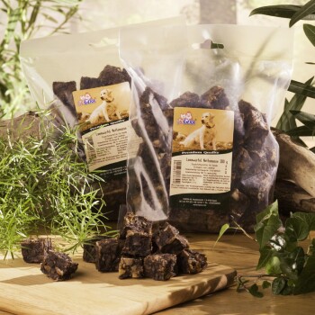 Hergestellt aus reinem Lammfleisch, idealer Belohnungssnack für zwischendurch.