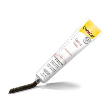 Die GimCat Derma Paste enthält eine nährstoffunterstützende Formel, die ein verbessertes Hautbild unterstützt und ein gesundes, glänzendes Fell fördert: