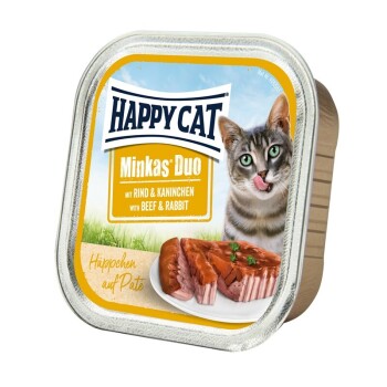 HAPPY CAT Duo Häppchen auf Paté 12x100g Rind und Kaninchen