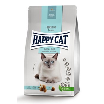 Alleinfuttermittel für ausgewachsene Katzen mit sensibler Verdauung. Weitere Informationen erhalten Sie hier: service@happycat.de