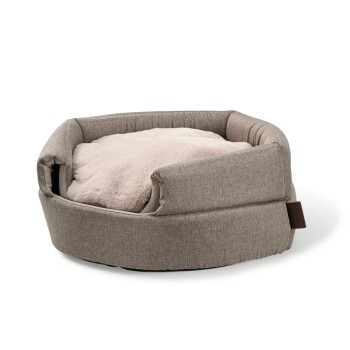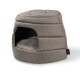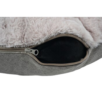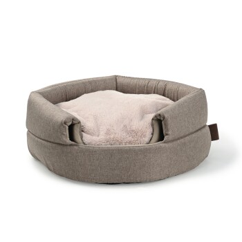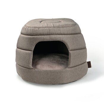 Die großräumige Höhle und bietet einen vor Zugluft geschützten Schlafplatz mit viel Platz für Katzen und kleine Hunde. Die moderne Kuschelhöhle aus hochwertigem Webstoff und flauschigem Plüsch bietet einen komfortablen und kuschelweichen Schlafplatz. Das Nestchen beeindruckt durch seine 2-in-1 Funktion: so kann es als Höhle, aber auch im Handumdrehen als Liegeplatz verwendet werden. Praktisch ist das herausnehmbare Wendekissen. Durch die verschiedenen verwendeten Stoffe des Kissen können Sie individuell entscheiden, welche Oberfläche Ihr Liebling und Sie bevorzugen - die robustere Webstoffseite oder das helle Langhaarplüsch. So kann die Optik des Kuschelbettchens verändert und Ihr Liebling zu jeder Jahreszeit mit maximalen Liegekomfort begeistert werden. Die mit Noppen besetzte Unterseite gibt dem Bettchen Halt, so dass es auf glatten Böden nicht verrutschen kann.