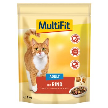 MultiFit Adult Trockenfutter ist ein Alleinfütterungsmittel (kein Zufüttern nötig). Stellen Sie Ihrer Katze immer frisches Trinkwasser bereit. Achten Sie bei der Nahrungsumstellung darauf, das bisherige Futter allmählich durch MultiFit Adult Trockenfutter zu ersetzen (über ca. eine Woche). So sorgen Sie für optimale Verträglichkeit und Akzeptanz auch während der Umstellungsphase.