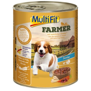 MultiFit Farmer Junior ist eine ausgewogene, speziell auf die Bedürfnisse von Welpen und Junghunden angepasste vollwertige Hundenahrung.