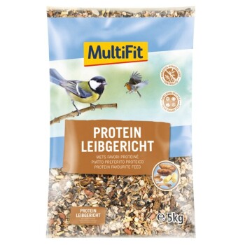 MultiFit Protein-Leibgericht enthält extra Proteine wie Insekten, Seidenraupen, Mehlwürmer und Flusskrebse. Das artgerechte Naturfutter mit Protein-Fett-Pellets liefert Wildvögeln viel Energie und ist ein echter Gaumenschmaus für jeden Schnabel.