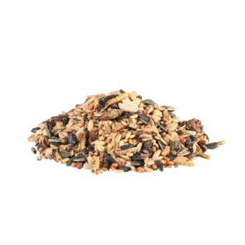 Der vielfältige Mix lockt viele verschiedene Wildvogelarten an und sorgt für ein fröhliches Treiben rund um den Futterplatz.