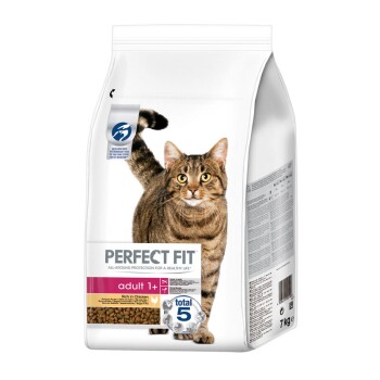 Mit der einzigartigen "Total 5" Formel liefert Perfect Fit einen Rundumschutz für fünf wichtige gesundheitliche Bedürfnisse Ihrer Katze, unabhängig von Alter und Lebensstil. Dazu gehören optimale Gewichtskontrolle und körperliche Verfassung, gesunde Harnwege und Verdauung, starke Abwehrkräfte und mehr Haut- und Fellgesundheit.
