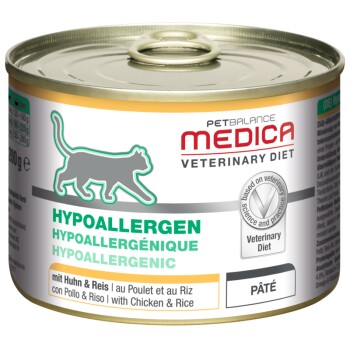 PetBalance Medica Hypoallergen wurde speziell für Katzen mit Futtermittelunverträglichkeiten entwickelt. Es enthält nur je eine ausgewählte Eiweiß- (Huhn) sowie Kohlenhydratquelle (Reis), dadurch können Nährstoffunverträglichkeiten gemindert werden.