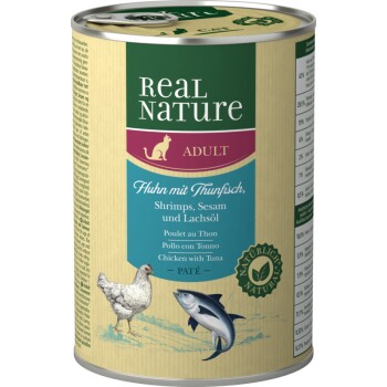 REAL NATURE Adult 6x400g Huhn mit Thunfisch Shrimps, Sesam und Lachsöl