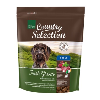 Die getreidefreie Rezeptur REAL NATURE COUNTRY SELECTION „Irish Green“ enthält frisches Lamm und Ente aus Irland als hochwertige, tierische Proteinquellen, Rote Bete und Pfefferminze sowie irische Algen von der rauen Küste Irlands.