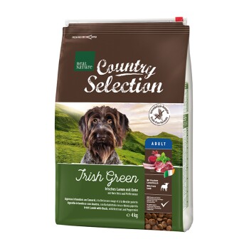 Die getreidefreie Rezeptur REAL NATURE COUNTRY SELECTION „Irish Green“ enthält frisches Lamm und Ente aus Irland als hochwertige, tierische Proteinquellen, Rote Bete und Pfefferminze sowie irische Algen von der rauen Küste Irlands.