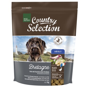 REAL NATURE Country Selection Bretagne – Adult: Mit Ente & französischem Perlhuhn – mit Artischocken und Thymian Aus ausgewählten natürlichen Zutaten, ernährungsphysiologisch mit wertvollen Vitaminen und Mineralstoffen ergänzt.
