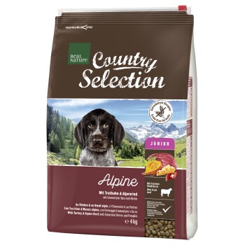 Daher ist REAL NATURE COUNTRY SELECTION auch für ernährungssensible Hunde geeignet. Die Junior-Rezeptur und Pelletgröße sind optimal an die Bedürfnisse von Welpen und Junghunden angepasst."