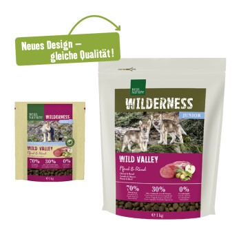 Real Nature WILDERNESS bietet natürliche Zutaten*, ernährungsphysiologisch sinnvoll mit wertvollen Vitaminen und Mineralstoffen ergänzt – garantiert ohne Zusatz von künstlichen Konservierungsmitteln, Farb- und Aromastoffen oder Emulgatoren. Die Junior-Rezeptur ist optimal an die Bedürfnisse von Welpen und Junghunden angepasst. * in den ausgewählten Rohstoffen Die Vorteile im Überblick:- 70% hochwertiges Pferd und Rind