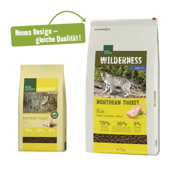 Diese REAL NATURE WILDERNESS Rezeptur besteht aus 70% hochwertiger Pute und Huhn, 30% Obst, Gemüse und wertvollen Zutaten und 0% Getreidezugabe. Sie enthält unter anderem frisches Putenfleisch und frische Hühnerleber als hochwertige tierische Proteinquellen, Kartoffeln als Kohlenhydratquelle sowie wertvolles Sonnenblumenöl.