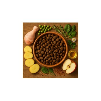 - Aus 70% hochwertigem Huhn , 30% Obst und Gemüse