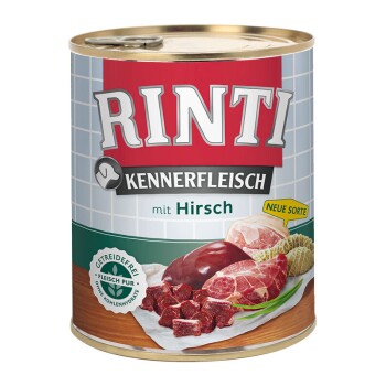 Hoher Fleischanteil: mit 70% Fleisch und Innereien ist RINTI Kennerfleisch reich an natürlichen Fleischstücken - und die Stücke zeichnen das echte Rinti Kennerfleisch aus.