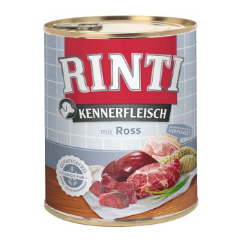 Hoher Fleischanteil: mit 70% Fleisch und Innereien ist RINTI Kennerfleisch reich an natürlichen Fleischstücken - und die Stücke zeichnen das echte Rinti Kennerfleisch aus.