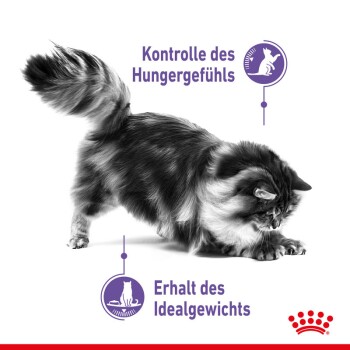 Manche Katzen haben einen nur schwer zu stillenden Appetit und neigen zwischen den Mahlzeiten zum Betteln. Vor allem kastrierte Katzen neigen häufig zu einer vermehrten Futteraufnahme und Bettelverhalten, wodurch das Risiko für Übergewicht steigt. ROYAL CANIN Appetite Control Care hilft mit einer speziellen Fasermischung das Hungergefühl Ihrer Katze zu reduzieren und dadurch das Sättigungsempfinden zu erhöhen, damit sich Ihre Katze nach der Mahlzeit zufrieden und satt fühlt. In einer internen Studie von ROYAL CANIN bestätigten 90 % der Katzenhalter nach 4 Wochen der Fütterung mit Appetite Control Care ein vermindertes Bettelverhalten.