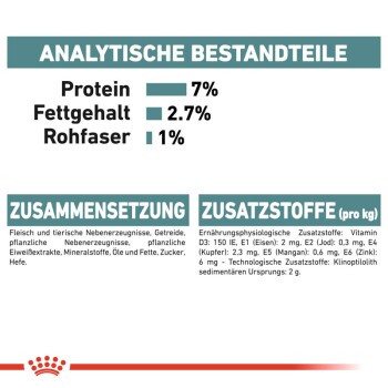 Durch die Aufnahme von Nahrungsfasern in ROYAL CANIN Hairball Care in Soße werden zudem eine geregelte Verdauung, eine ausgewogene Darmflora und eine gesunde Darmtätigkeit unterstützt. Zusätzlich ist hochwertiges Protein enthalten, um eine gesunde Muskelentwicklung zu fördern.