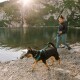 Die Leine kann an zwei verschiedenen Befestigungsmöglichkeiten angebracht werden - einem Aluminiumring am Rücken, den man beim täglichen Spaziergang nutzen kann, oder an einem verstärkten Stoffring am Brustteil des Geschirrs, wenn Ihr Liebling beispielsweise stark an der Leine zieht. Somit können Sie auch mit Ihrem Hund trainieren, nicht mehr an der Leine zu ziehen. Praktisch ist der Brustring auch z.B. für die Anbringung einer Schleppleine, die auf dem Boden schleifen soll und dem Hund dabei nicht im Weg ist.