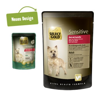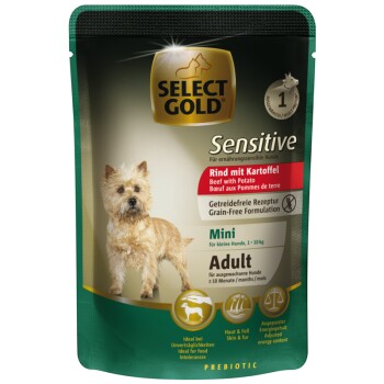 SELECT GOLD Sensitive Adult ist eine speziell entwickelte, ausgewogene Premium-Nassnahrung.