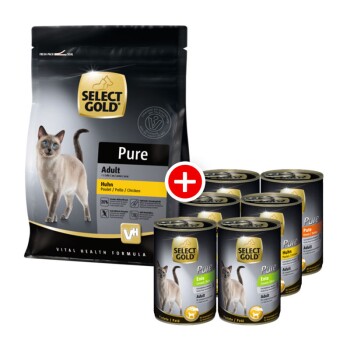 SELECT GOLD Adult Pure ist ein Alleinfütterungsmittel (kein Zufüttern nötig). Stellen Sie Ihrer Katze immer frisches Trinkwasser bereit. Achten Sie bei der Nahrungsumstellung darauf, das bisherige Futter allmählich durch SELECT GOLD Adult Pure zu ersetzen (über ca. eine Woche). So sorgen Sie für optimale Verträglichkeit und Akzeptanz auch während der Umstellungsphase.
