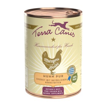Metzger`s Bestes - pures Fleisch von unserem Münchner Metzger. Unsere puren Fleischdosen sind geeignet für alle erwachsenen und normalgewichtigen Hunde als Alternative zum Rohfleisch und müssen mit pflanzlichen Komponenten zu einer kompletten Hundemahlzeit ergänzt werden.