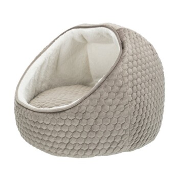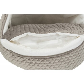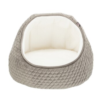Die Kuschelhöhle in Samt-Optik besitzt im Inneren Plüsch, wodurch sie für Ihren Liebling der optimale Rückzugsort ist. Das Kissen im Inneren ist herausnehmbar und wendbar. Auf der einen Seite ist es in Samtoptik auf der anderen Plüsch. Der Bezug besteht aus Polyester und ist mit Schaumstoff gefüllt. Das Bezug des Kissen lässt sich abnehmen und somit einfacher reinigen. Dank des rutschfesten Boden besitzt die Höhle auch auf glatten Böden einen festen Stand.